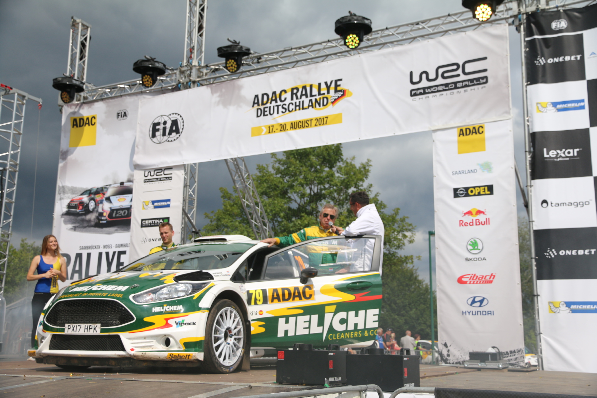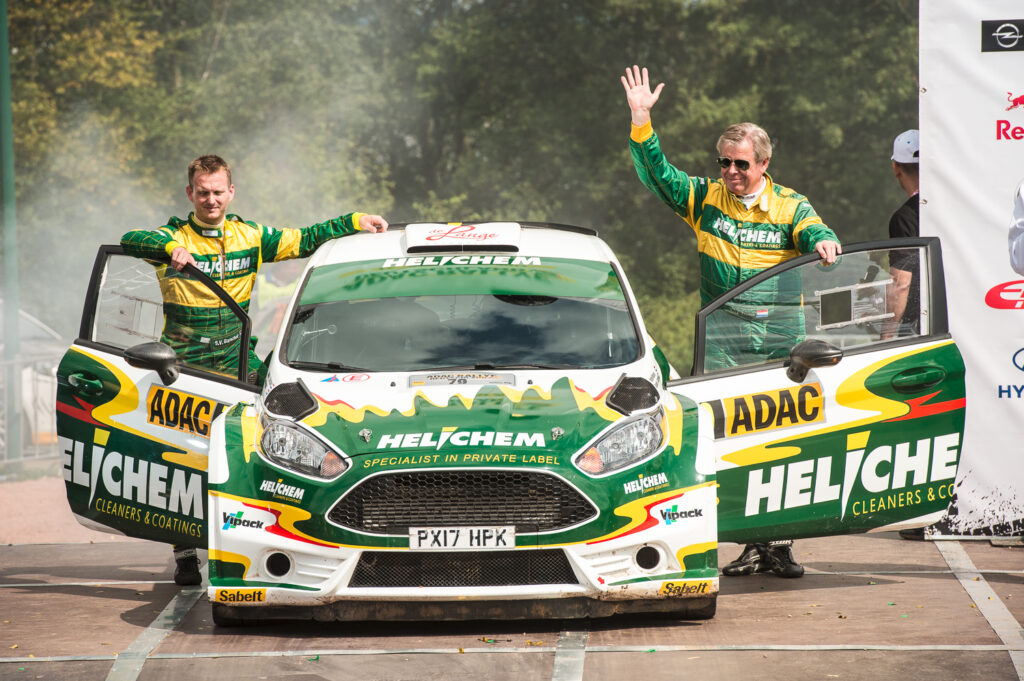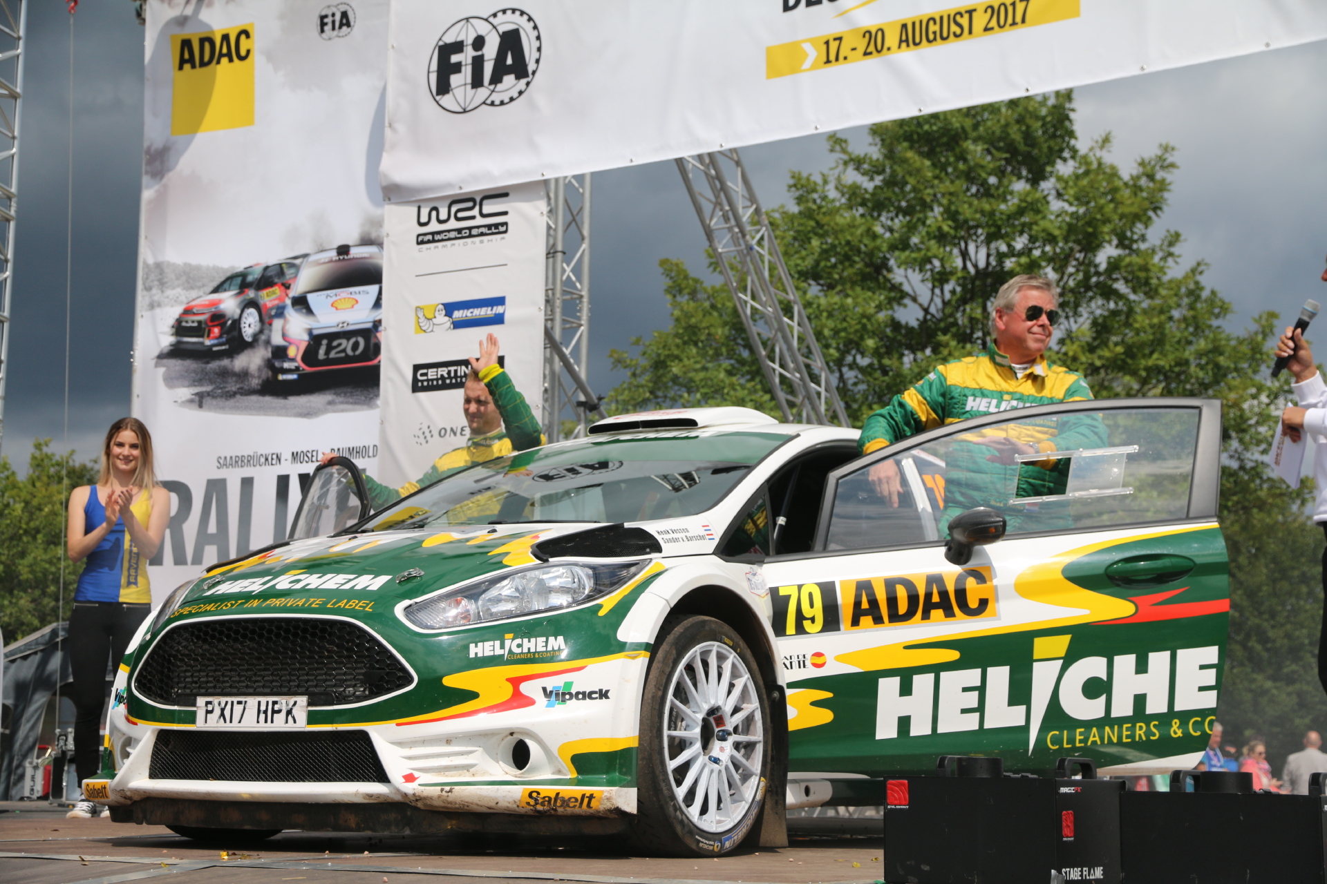 Tevredenheid bij Henk Vossen na afloop van Deutschland Rallye ondanks pech. Vanwege een defecte oliedruksensor was Henk Vossen gedwongen zijn Ford Fiesta R5 halverwege de tweede wedstrijddag van de Deutschland Rallye aan de kant te zetten.