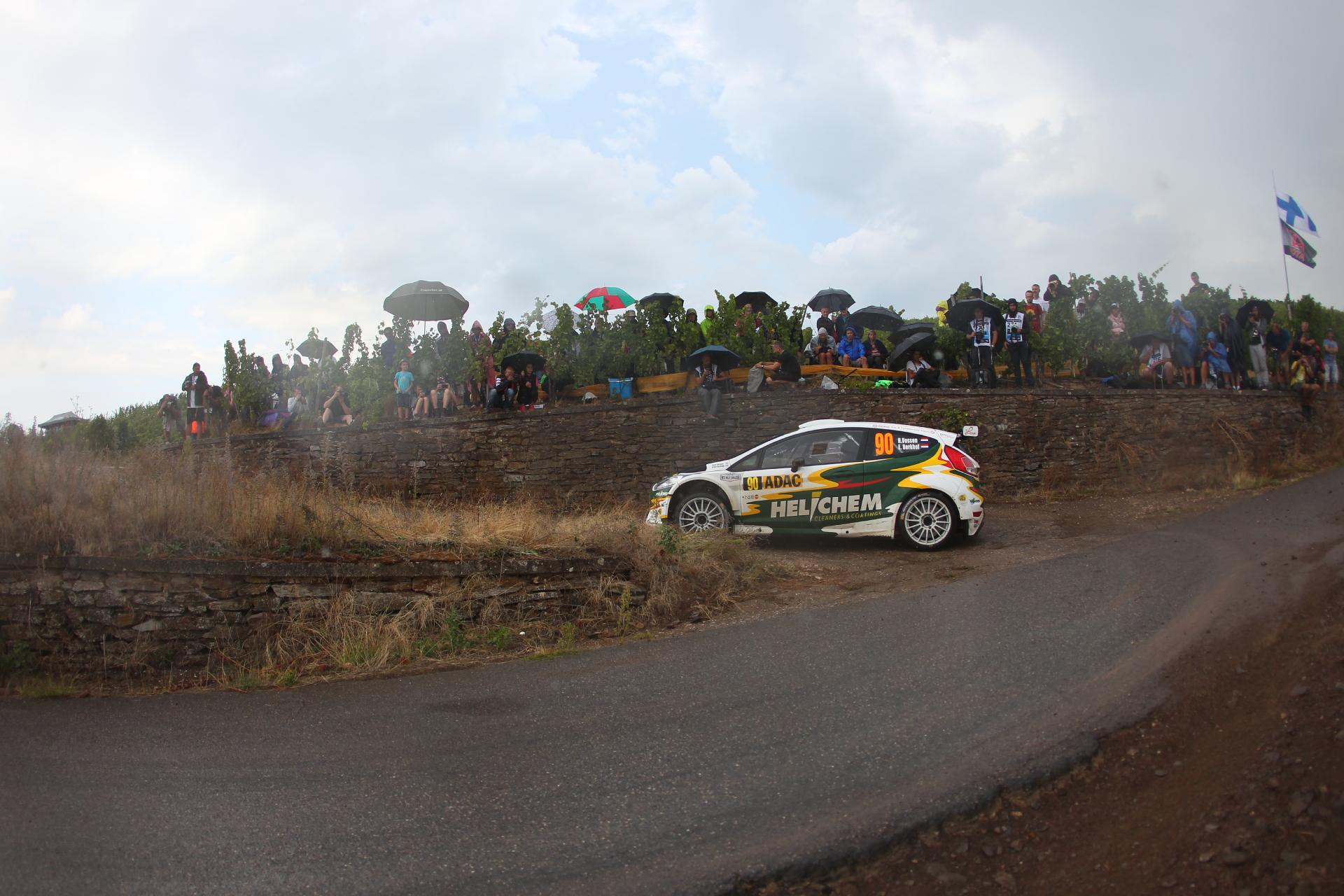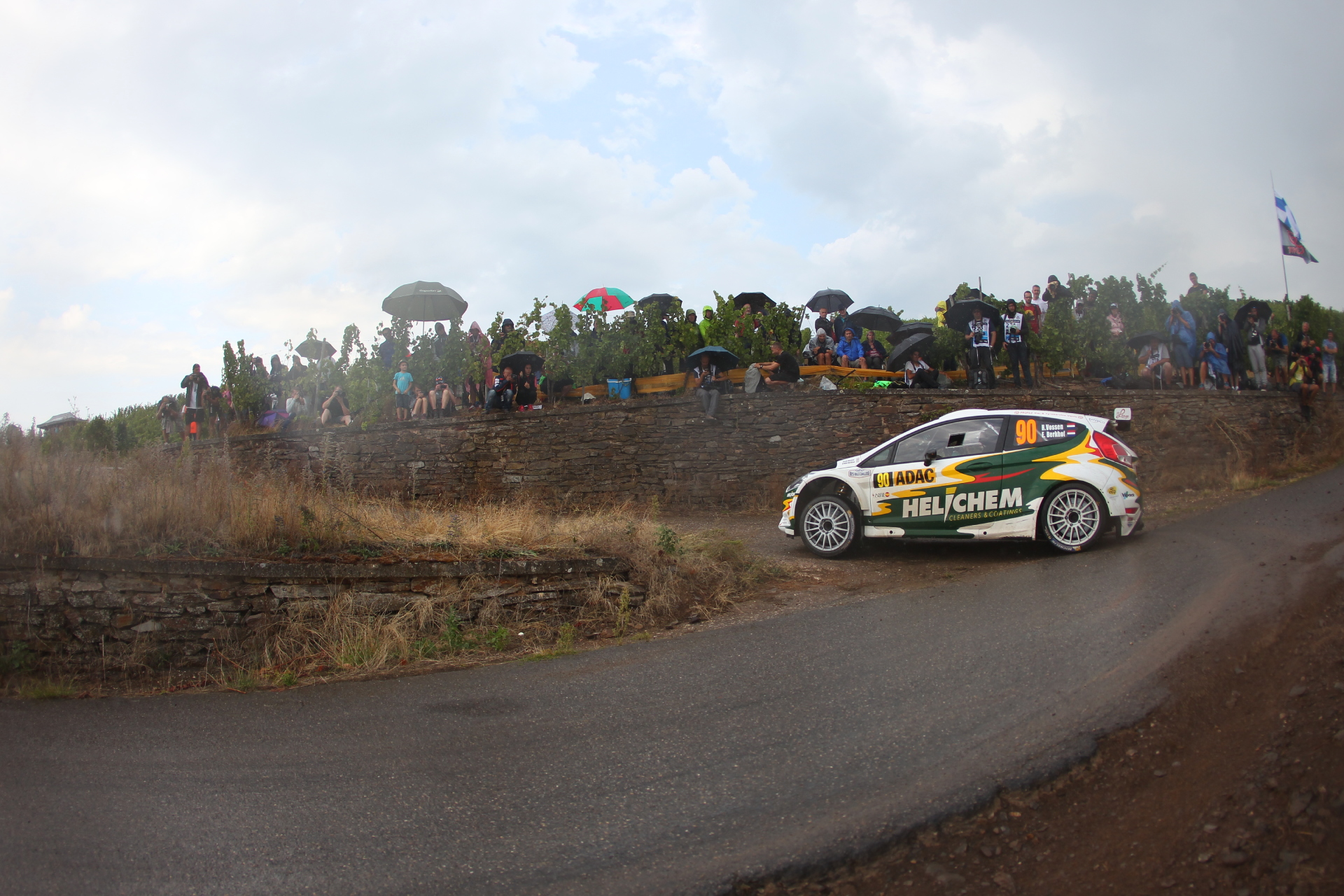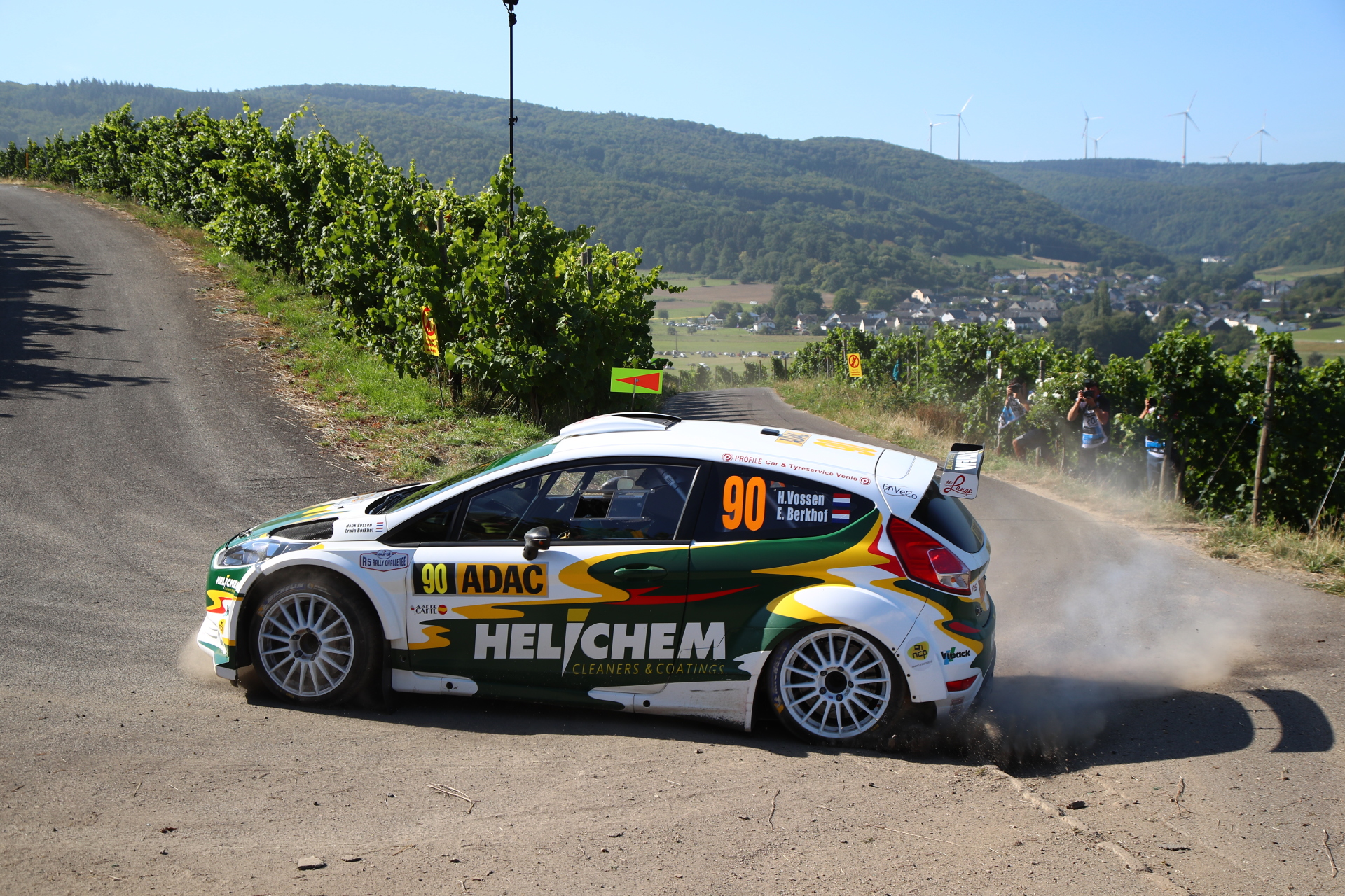 Het was de 37e keer dat Henk Vossen aan de start kwam van de Duitse ronde van het WK Rallykampioenschap. De ervaren Tegelse rallyrijder wist dus wat hem te wachten stond maar toch is het nooit hetzelfde. Zo zat er dit keer een navigator op de bijrijderstoel waarmee Vossen nooit eerder had gereden. “Ik moet bekennen dat Erwin geweldig werk heeft geleverd. Dan kun je zien dat hij als zoon van een van de beste Nederlandse navigatoren het vak met de paplepel ingegoten heeft gekregen,” loofde Vossen zijn assistent. De equipe had het nodige te stellen met de wegen in het Moezelgebied, waarop de Ford Fiesta soms bij het remmen plotseling doorschoot. Gelukkig  zonder ernstige gevolgen. “Het gebeurde allemaal op plaatsen waar het geen kwaad kon. Je schiet een stukje door, trekt de handrem aan, draait honderdtachtig graden en je kunt weer door. Alleen heb je dan natuurlijk wel even tijd verloren,” gaf Vossen te kennen, puttend uit zijn jarenlange rallyervaring. Die kwam op de tweede dag ook weer goed van pas. Halverwege de tweede klassementsproef kwam de regen met bakken uit de hemel, terwijl de Helichem Ford Fiesta juist op droogweer banden stond. Terwijl links en rechts auto’s tussen de wijnranken vlogen kwam Vossen als 37e over de finish. Zonder noemenswaardig tijdverlies. Henk Vossen reed sowieso een hele vlakke en snelle rally. Zo zette hij bij beide keren dat de beruchte Panzerplatte-proef werd gereden – met zijn 38 km veruit de langste van de rally – vrijwel dezelfde tijd op de klokken.