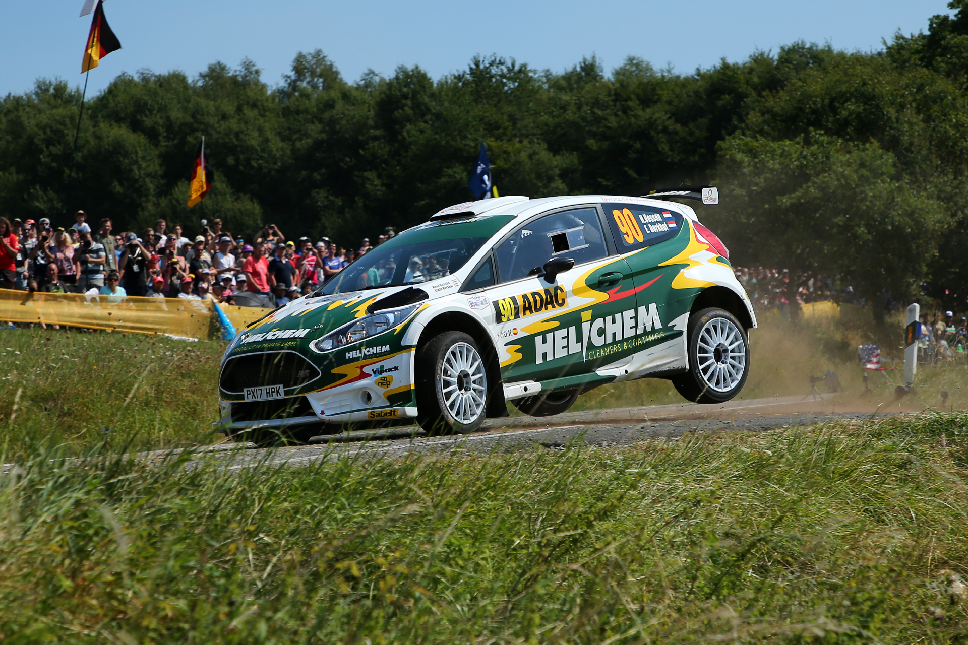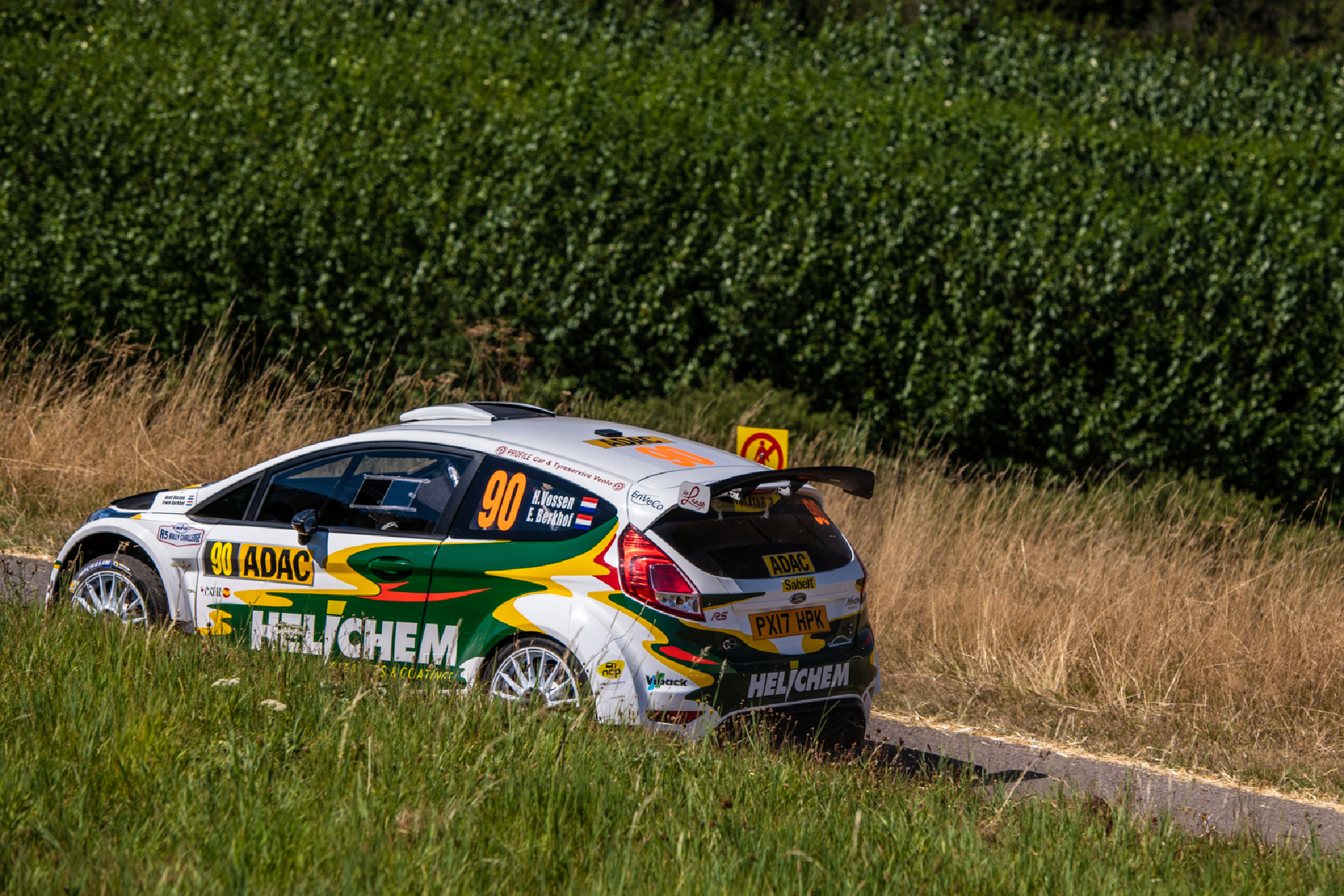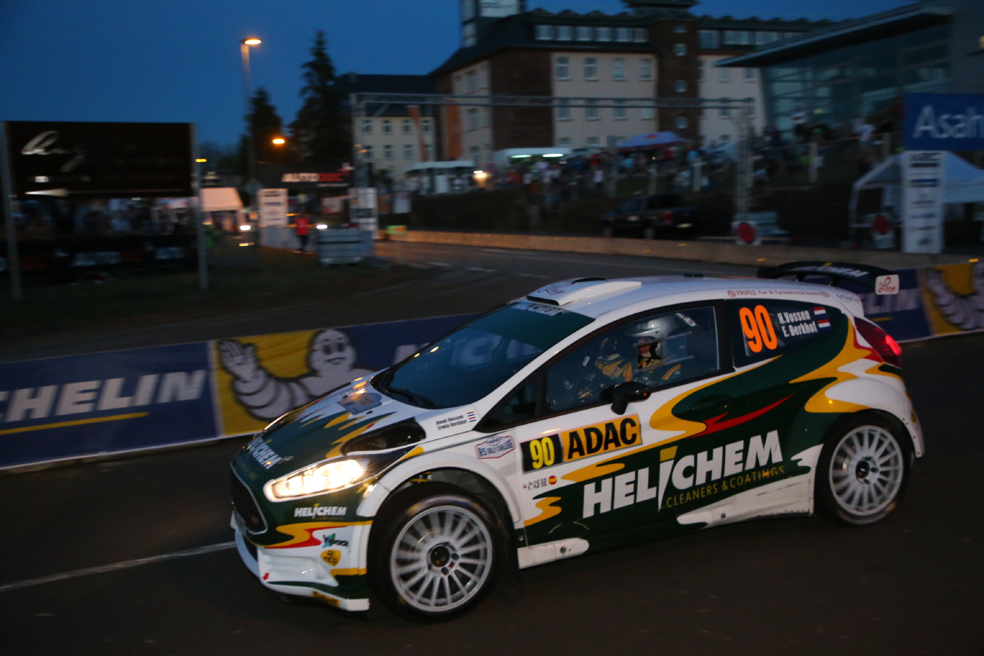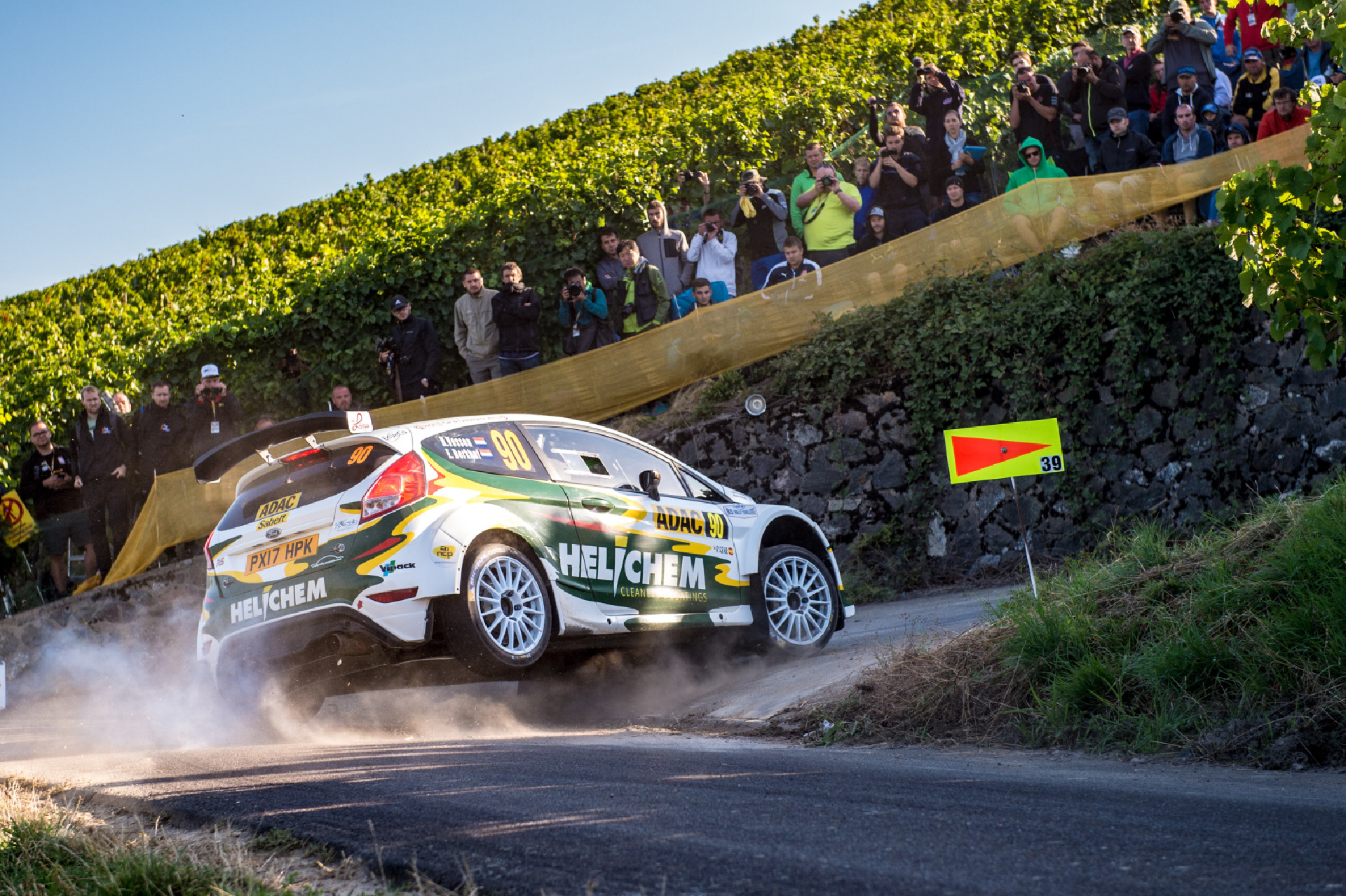 Het was de 37e keer dat Henk Vossen aan de start kwam van de Duitse ronde van het WK Rallykampioenschap. De ervaren Tegelse rallyrijder wist dus wat hem te wachten stond maar toch is het nooit hetzelfde. Zo zat er dit keer een navigator op de bijrijderstoel waarmee Vossen nooit eerder had gereden. “Ik moet bekennen dat Erwin geweldig werk heeft geleverd. Dan kun je zien dat hij als zoon van een van de beste Nederlandse navigatoren het vak met de paplepel ingegoten heeft gekregen,” loofde Vossen zijn assistent. De equipe had het nodige te stellen met de wegen in het Moezelgebied, waarop de Ford Fiesta soms bij het remmen plotseling doorschoot. Gelukkig  zonder ernstige gevolgen. “Het gebeurde allemaal op plaatsen waar het geen kwaad kon. Je schiet een stukje door, trekt de handrem aan, draait honderdtachtig graden en je kunt weer door. Alleen heb je dan natuurlijk wel even tijd verloren,” gaf Vossen te kennen, puttend uit zijn jarenlange rallyervaring. Die kwam op de tweede dag ook weer goed van pas. Halverwege de tweede klassementsproef kwam de regen met bakken uit de hemel, terwijl de Helichem Ford Fiesta juist op droogweer banden stond. Terwijl links en rechts auto’s tussen de wijnranken vlogen kwam Vossen als 37e over de finish. Zonder noemenswaardig tijdverlies. Henk Vossen reed sowieso een hele vlakke en snelle rally. Zo zette hij bij beide keren dat de beruchte Panzerplatte-proef werd gereden – met zijn 38 km veruit de langste van de rally – vrijwel dezelfde tijd op de klokken.