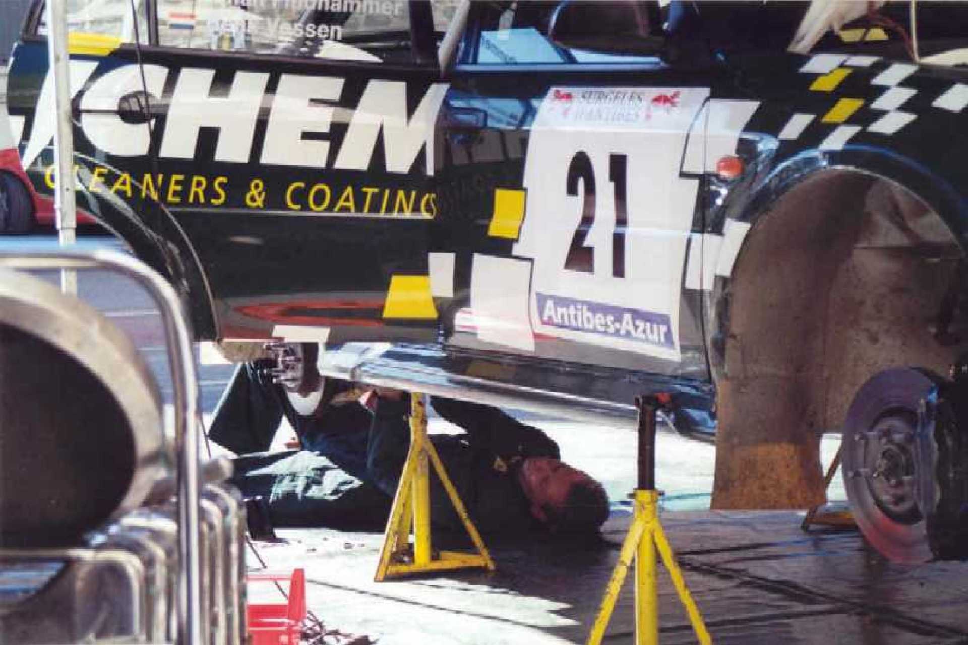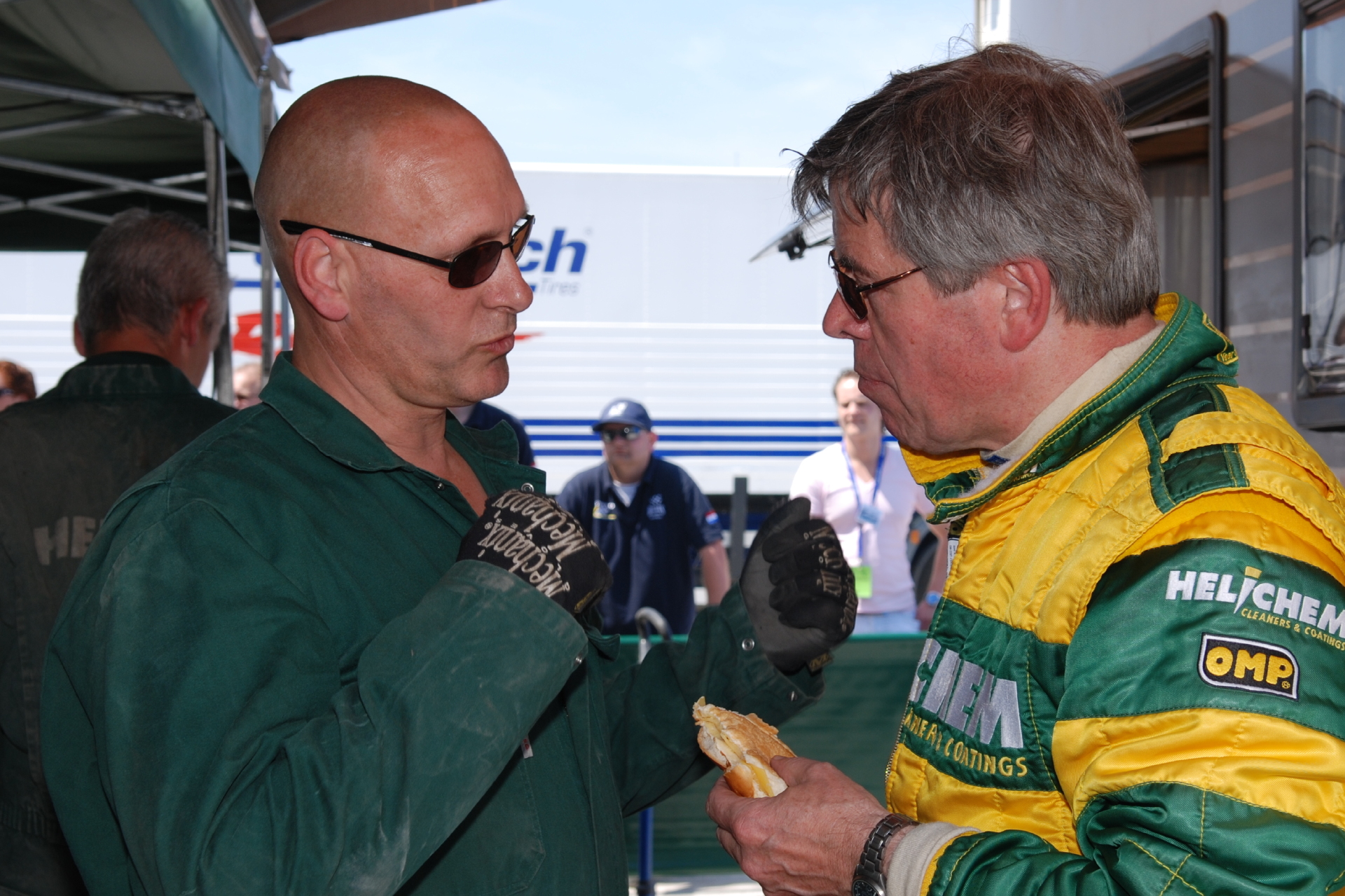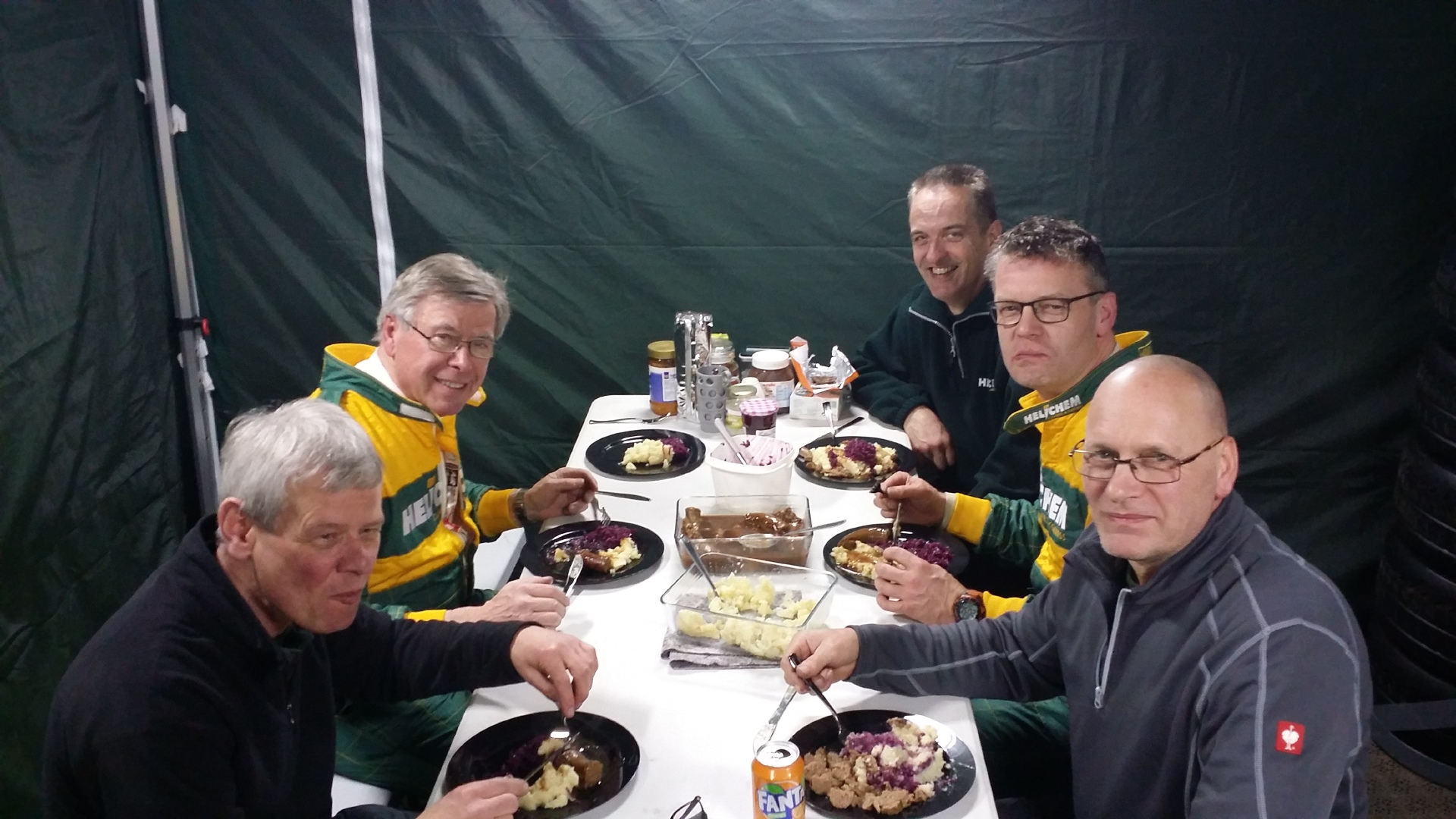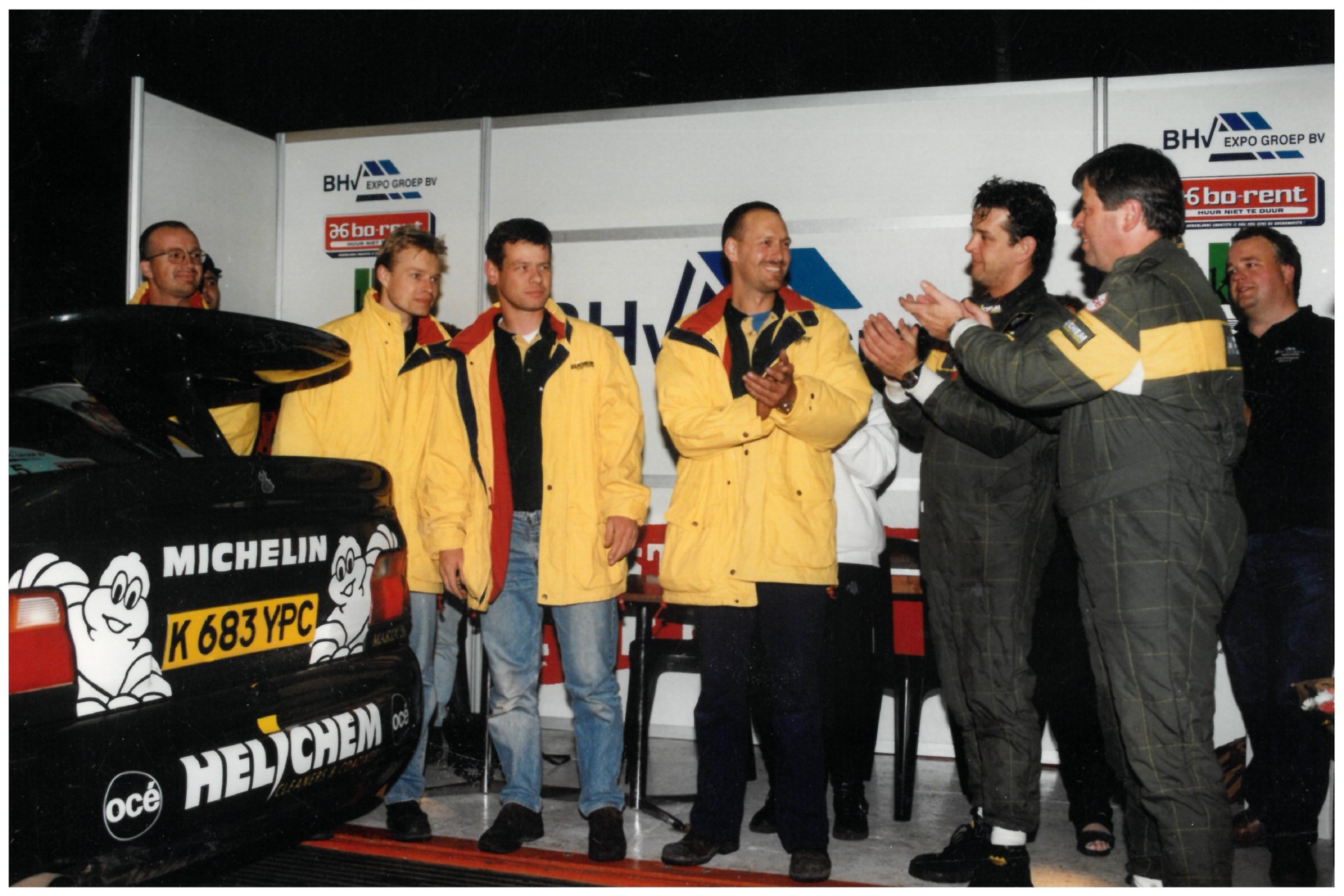 Lou: ‘Hij vraagt soms het onmogelijke en is veeleisend. Dat houdt mij en het hele team scherp.’ Dat team, al jaren een vaste hobby- en vriendenploeg met professionele instelling, bestaat uit: Rob Findhammer (‘Maitre Robert)’ zorgt naast de banden van de auto voor de inwendige mens; Michelin-sterren en -banden.