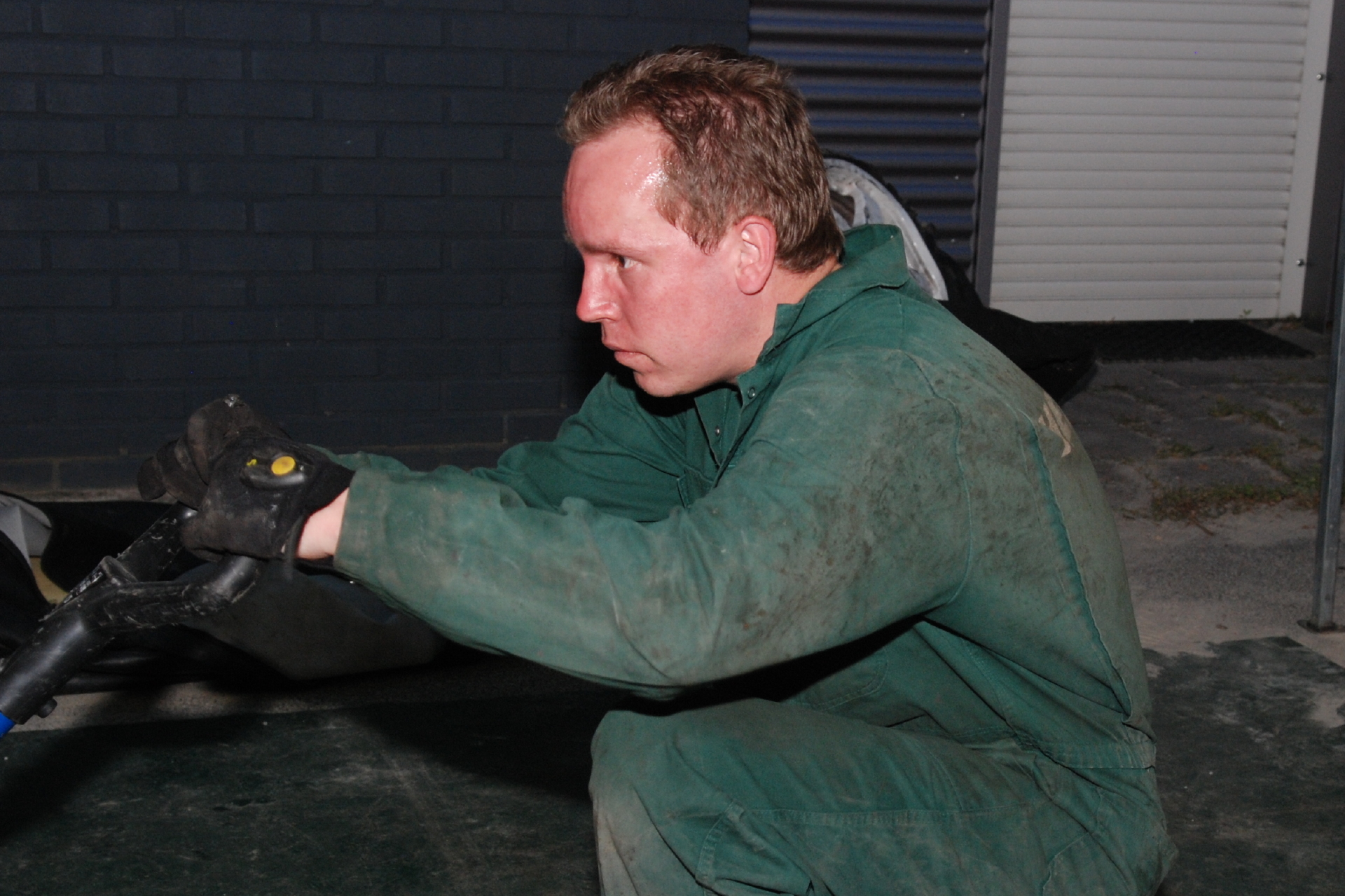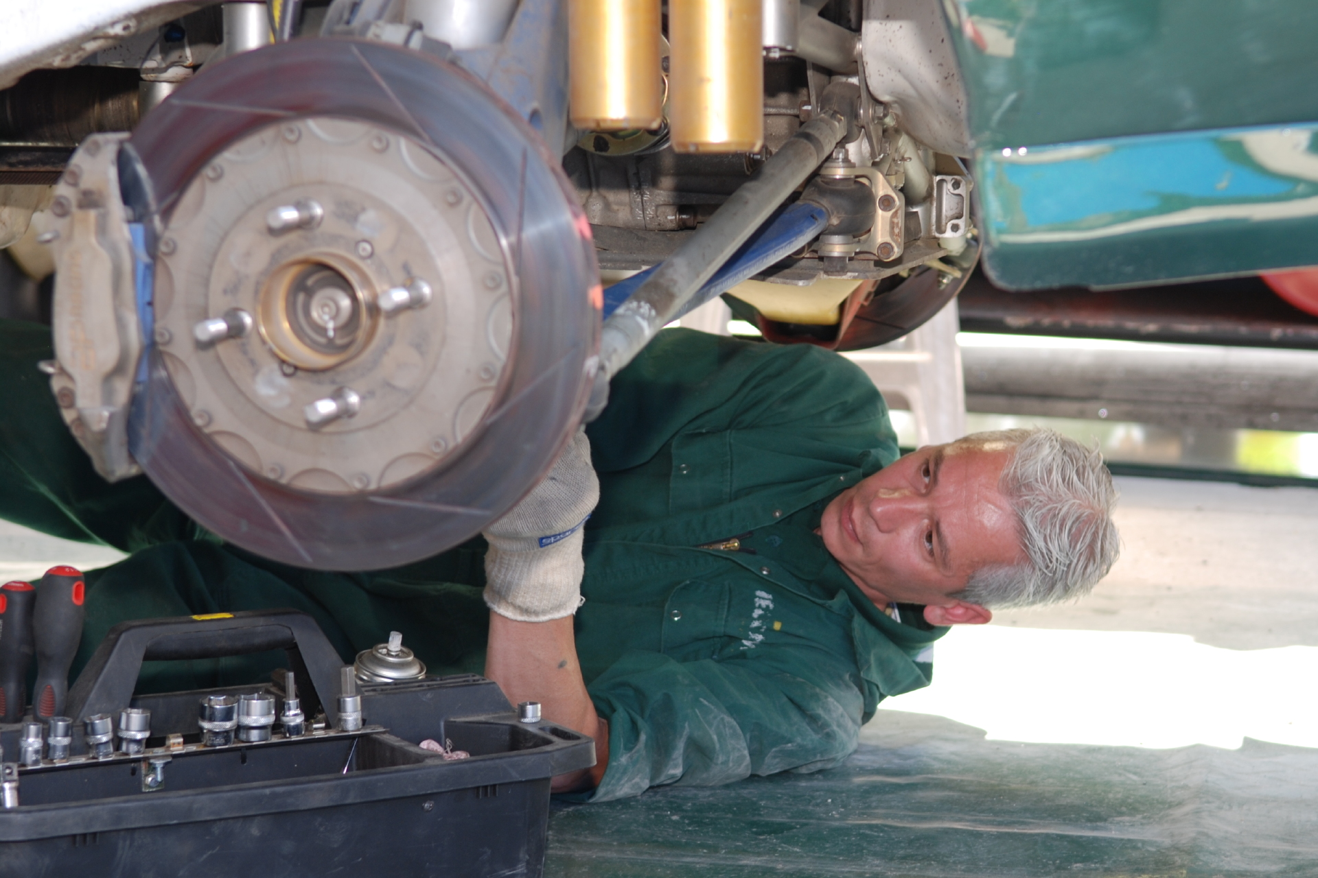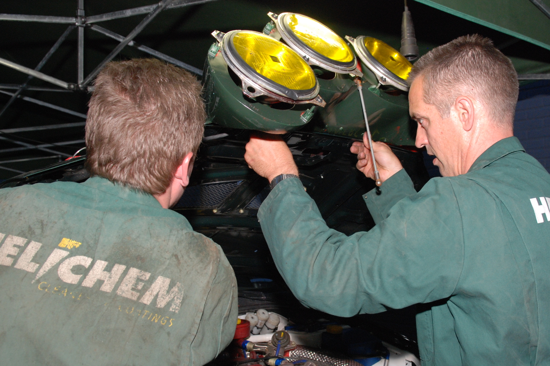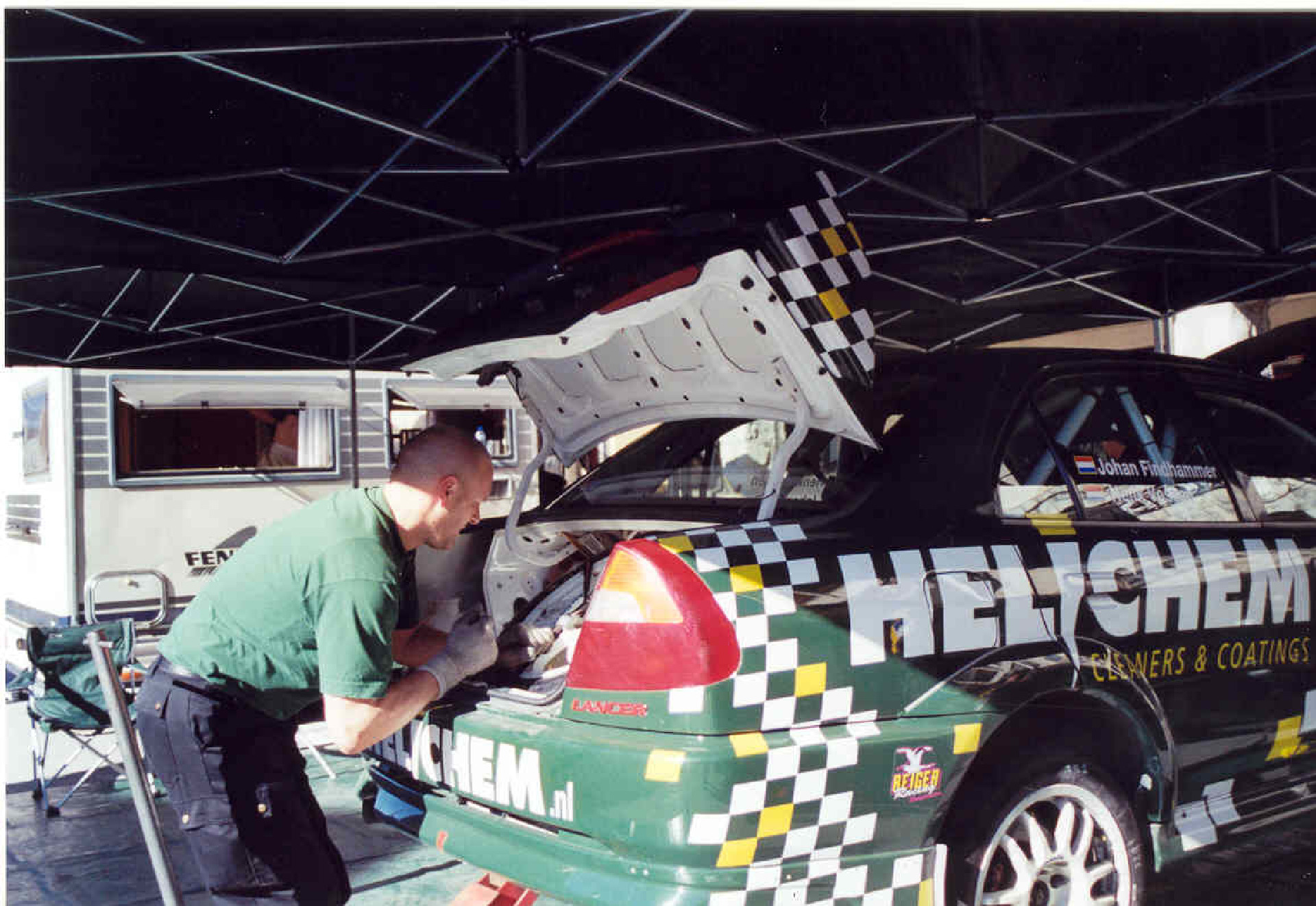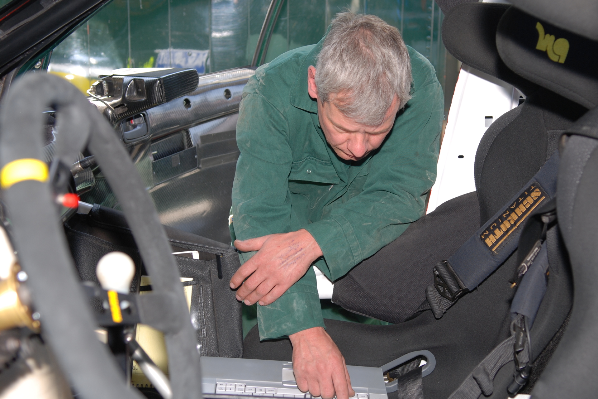 Lou: ‘Hij vraagt soms het onmogelijke en is veeleisend. Dat houdt mij en het hele team scherp.’ Dat team, al jaren een vaste hobby- en vriendenploeg met professionele instelling, bestaat uit: Rob Findhammer (‘Maitre Robert)’ zorgt naast de banden van de auto voor de inwendige mens; Michelin-sterren en -banden.