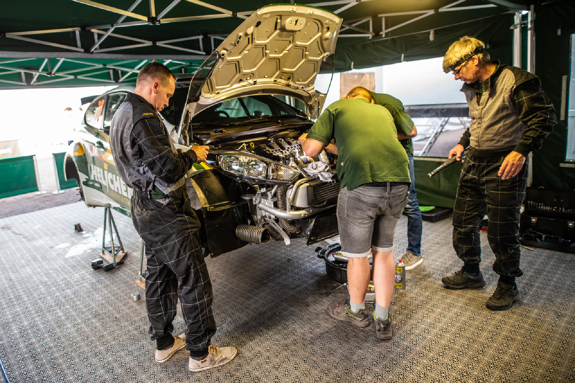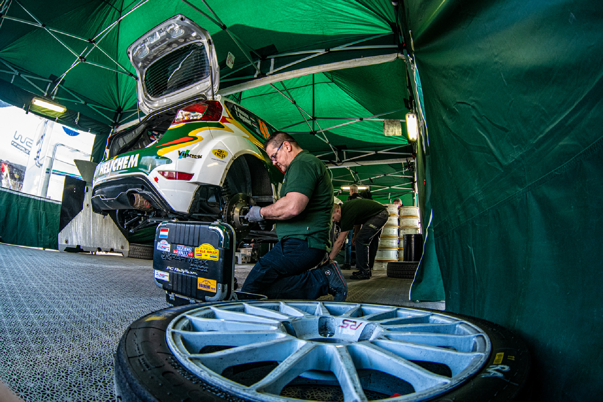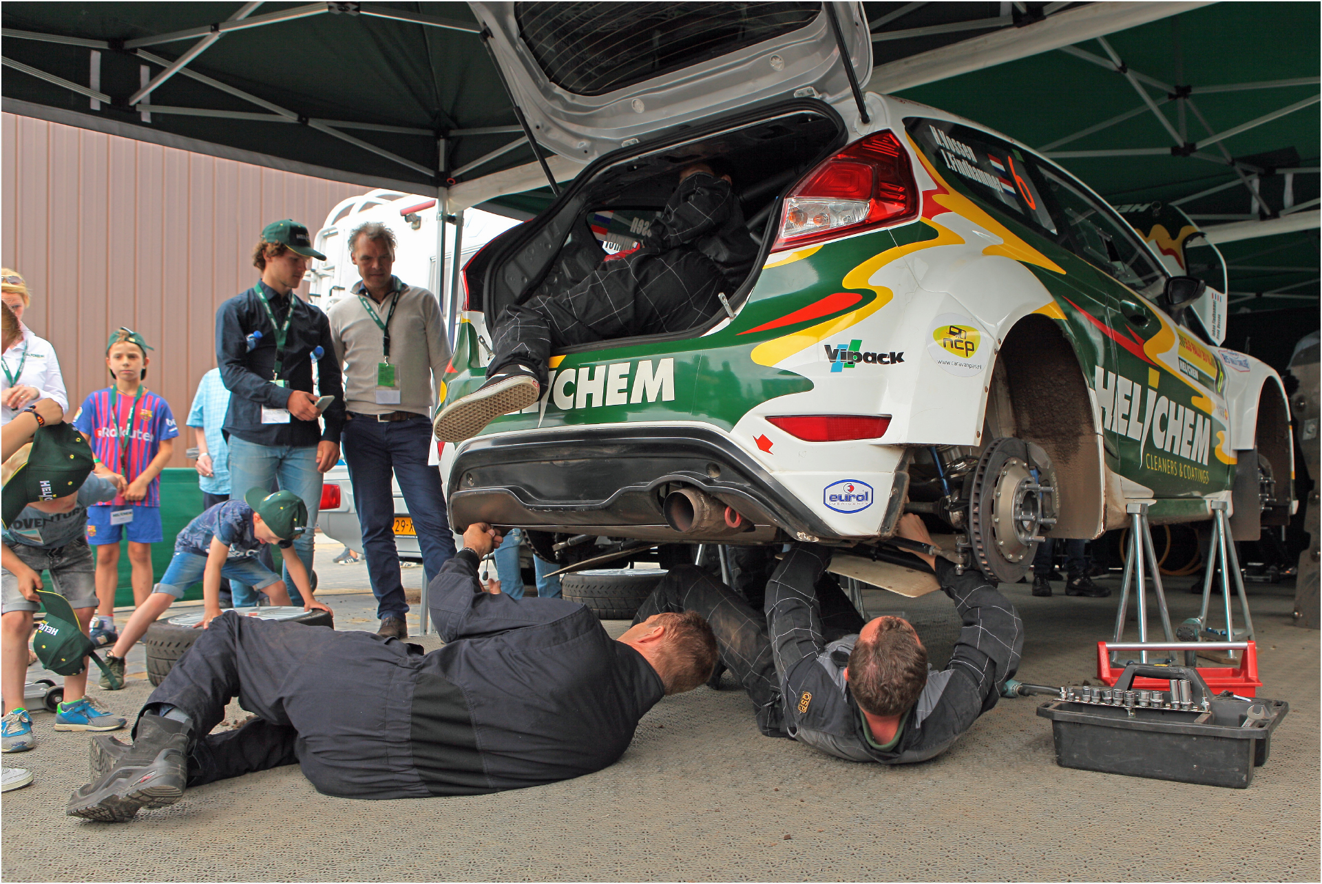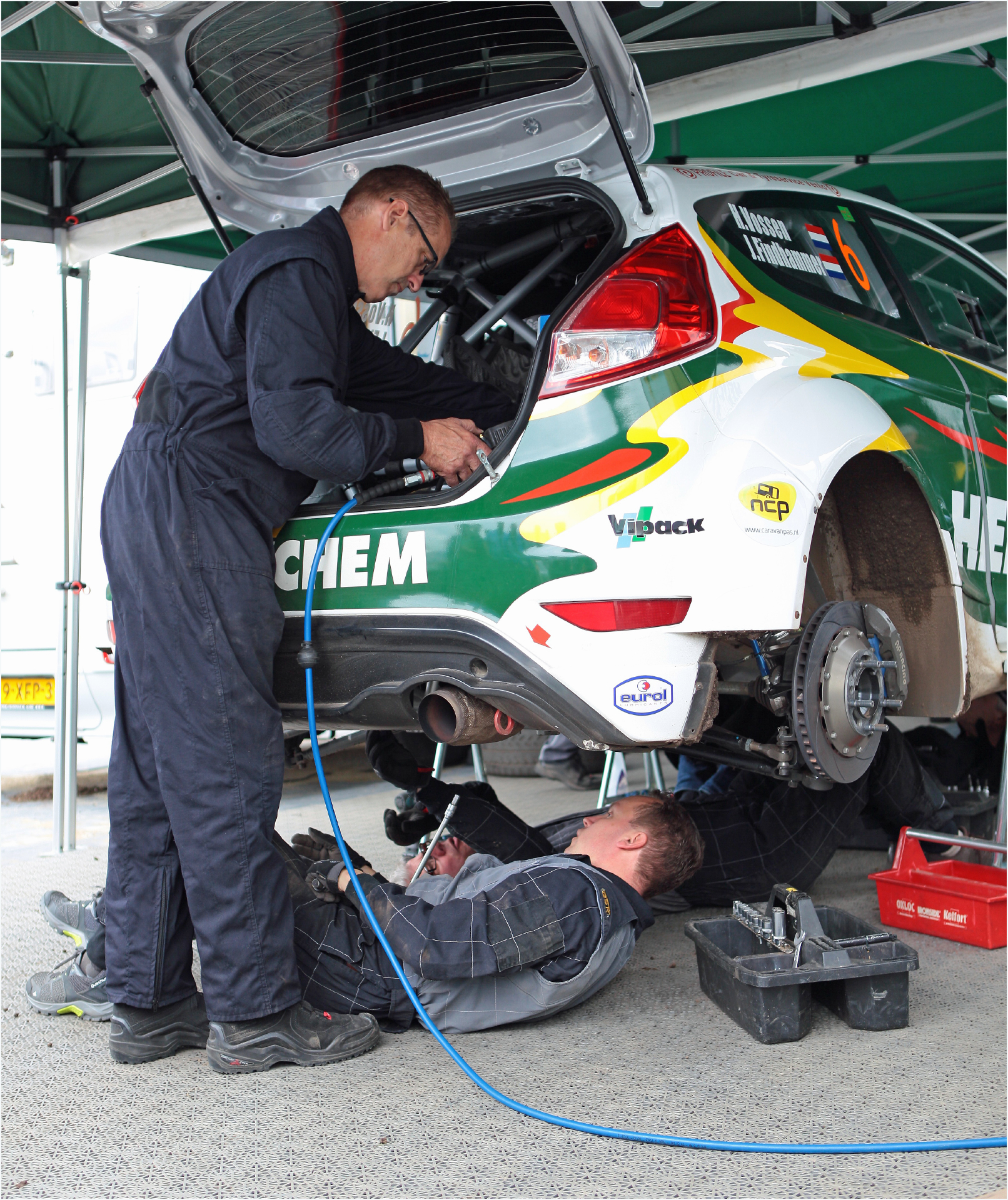 Martien Philipsen, is belast met de brandstof en houdt de voorruit en de rest van de wagen schoon. Aimé Mangé vaak begeleid door zoon Xavier (hand- en spandiensten): Algehele controle ophanging, remmen en hersteller van eventuele schades. Sjors van Enckevort, logistieke man die mede zorgt voor de algehele controle. In de voorbereiding op de grotere evenementen zoals bijvoorbeeld de WK-rally’s, helpen Dakmar Strijkers (preparatie verkenningsauto) en Paul Breuer (preparatie, design en bestickering.